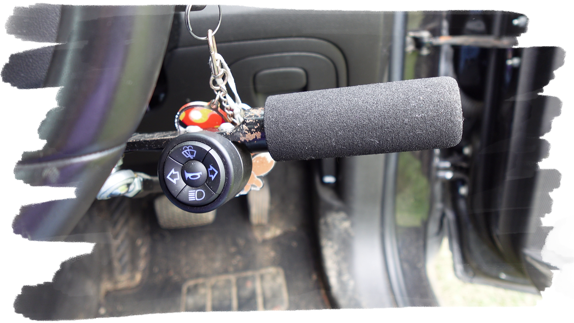 Another thing you'll often see on cars with hand-controls is either a spinner knob or some other style of grip assist on the steering wheel itself. Spinner knobs - which you can see in the first photo on this post, usually look like a door-knob attached to the top left or right side of the wheel (depending on what side of the road you drive on) that allow you to turn easier with your remaining hand, but other options include tri-rod spinners (which are mostly the same, but with three rods the user can place their hand and wrist on if they have problems with their grip) and joystick controls, which I described earlier.